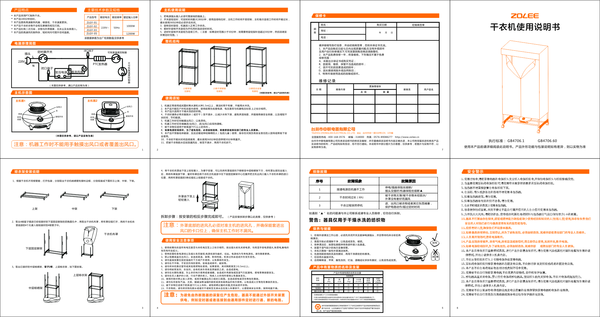 干衣機說明書